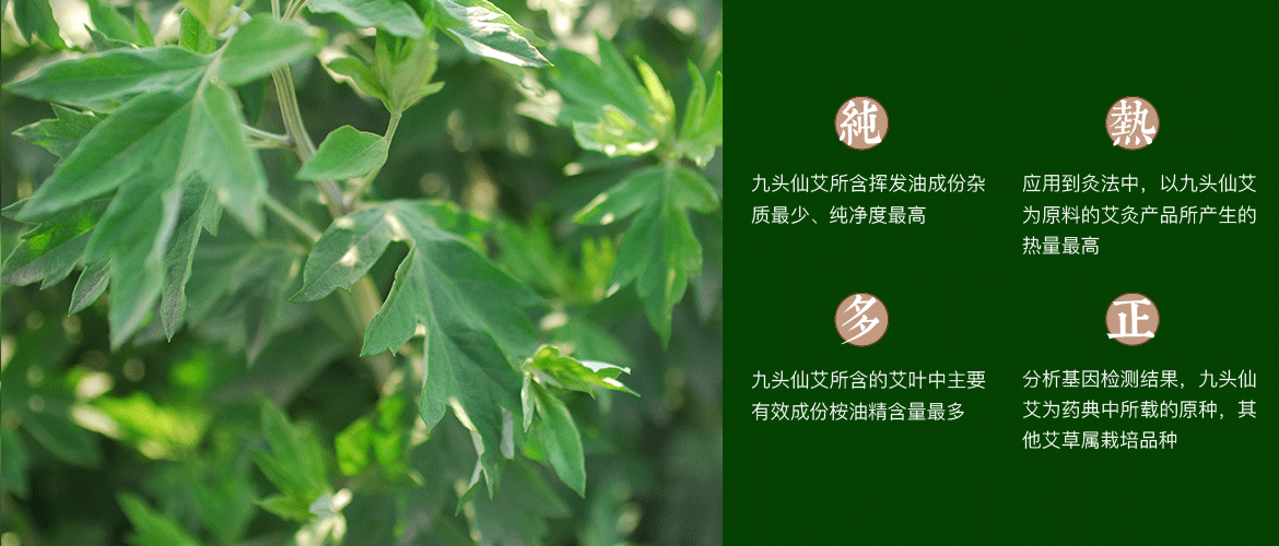 艾叶应用最多的用途在于艾灸,从这份检测数据中,我们看到,九头仙艾应用到灸法中,所产生的热量高于蕲艾、祁艾和川艾,是最高的,因此使用九头仙艾叶为原料的艾灸制品,应用到灸法中,会对施灸者产生更强的灸感,从而达到更好的效果。