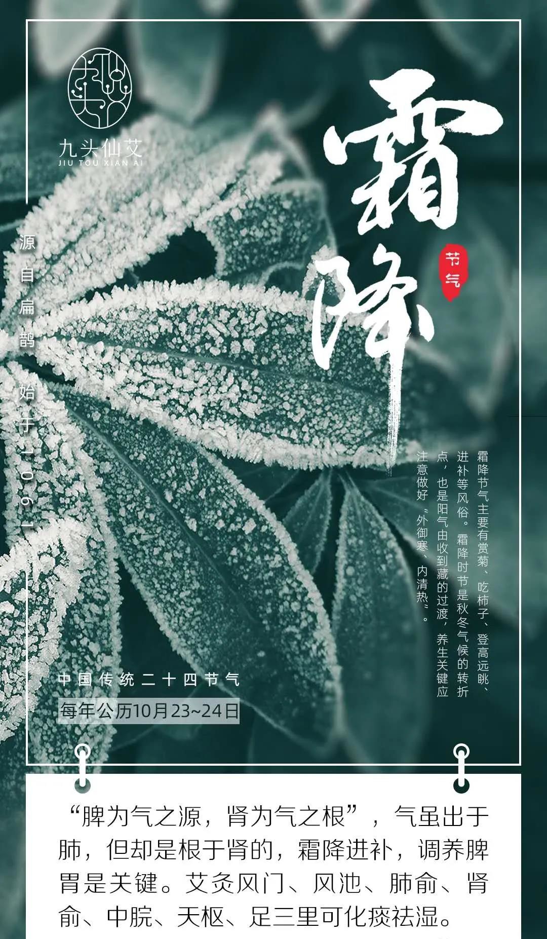 “脾为气之源,肾为气之根”,气虽出于肺,但却是根于肾的,霜降进补,调养脾胃是关键。艾灸风门、风池、肺俞、肾俞、中脘、天枢、足三里可化痰祛湿。