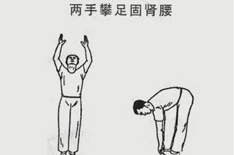 两手攀足式,可通肾经和膀胱经,强筋骨、固腰肾、增加阳气。