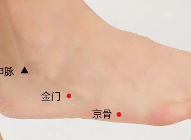 【取穴方法】正坐垂足着地或俯卧位,在足跗外侧,第五跖骨粗隆下,赤白肉际处取穴。