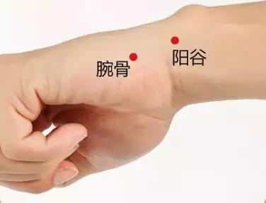 【取穴方法】腕骨在手掌尺侧,当第5掌骨基底与钩骨之间的凹陷处,赤白肉际。