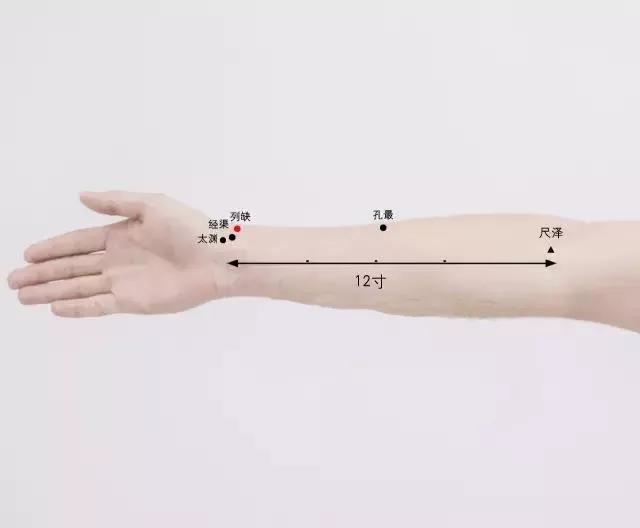 伤风,头痛,项强,咳嗽,气喘,咽喉肿痛,口眼歪斜,牙痛,指压列缺穴,可以使手动脉及血液流动,对于调理骨折、伤痕等后遗症非常有效。