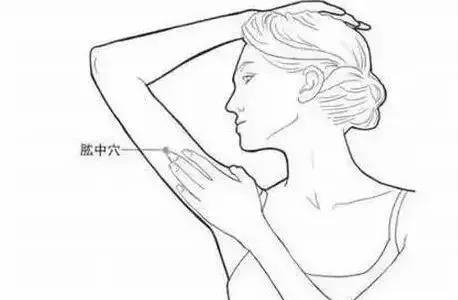 肱中穴,在大臂内侧,腋窝下与手肘中间点。艾灸或以拇指圈状按摩此穴30~50次,能加速代谢速度,排除平时堆积在大臂内侧的废物,促进脂肪消耗,使手臂变得纤瘦。