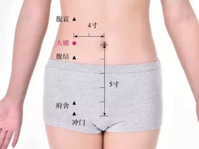天枢穴在腹中部,距脐中2寸。按摩此穴对调节肠腹有明显的双向性疗效,既能止泻,又能通便,长期保养按摩此穴能够确保肠道健康,清除肠道内常年累积的宿便,轻松赶走堆积在腹部的肉肉。